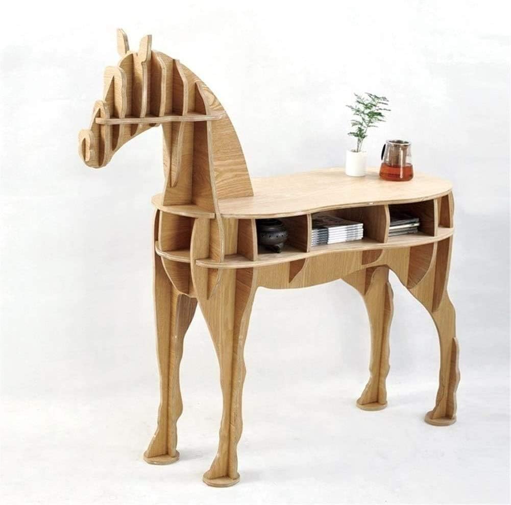 Se trata de una mesa de escritorio con la forma de la figura de un caballo! Está construida con tablas de contrachapado de 12 mm de espeso. Y como podéis ver en las imágenes, cuenta también con algunos espacios para almacenamiento. Algo así como "cajones abiertos".